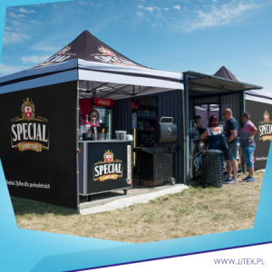 Es mangelt nicht die Beispielen für den Einsatz dieser Art von Zelten. Am meistens kann man sie auf verschiedenen Festivals und großen Massenveranstaltungen finden, wo sich die Unternehmen einem breiten Publikum präsentieren möchten. Dies ist eine der besseren Möglichkeiten, ein bedrucktes Werbezelt zu benutzen, denn unter diesen Umständen ist es einfach zu merken und es ist oft ein Orientierungspunkt auf der Veranstaltungskarte.
