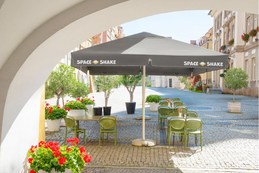 Gastronomieschirme sind eine ideale Lösung für Gastronomiebetriebe, die ihren Gästen entspannenden Schatten spenden und sich vor allem von der Konkurrenz abheben wollen. Unsere Schirme verbinden viele Funktionen: