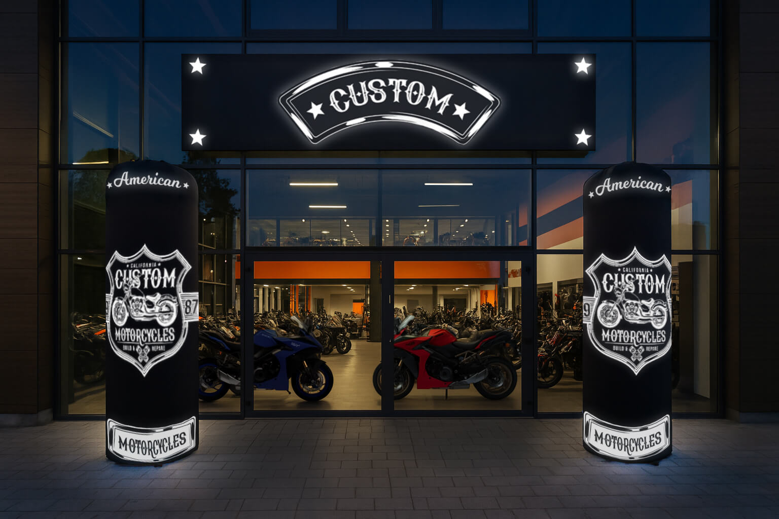 Um die Marke maximal hervorzuheben und einen einzigartigen visuellen Effekt zu erzielen, kann die aufblasbare Säule vollständig bedruckt werden.