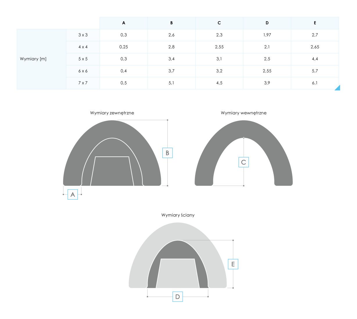Das AirBlock aufblasbare Werbezelt kann Abmessungen von 3 x 3 m bis 7 x 7 m haben. Je nach Größe beträgt der Durchmesser der Konstruktionsrohre 25 cm bis 50 cm. Das Innere der Beine besteht aus Polyurethan mit einem Gewicht von 300 g/m2, und die feste Verbindung der Konstruktionselemente macht das Werbezelt stabiler und widerstandsfähiger gegen Witterungseinflüsse.