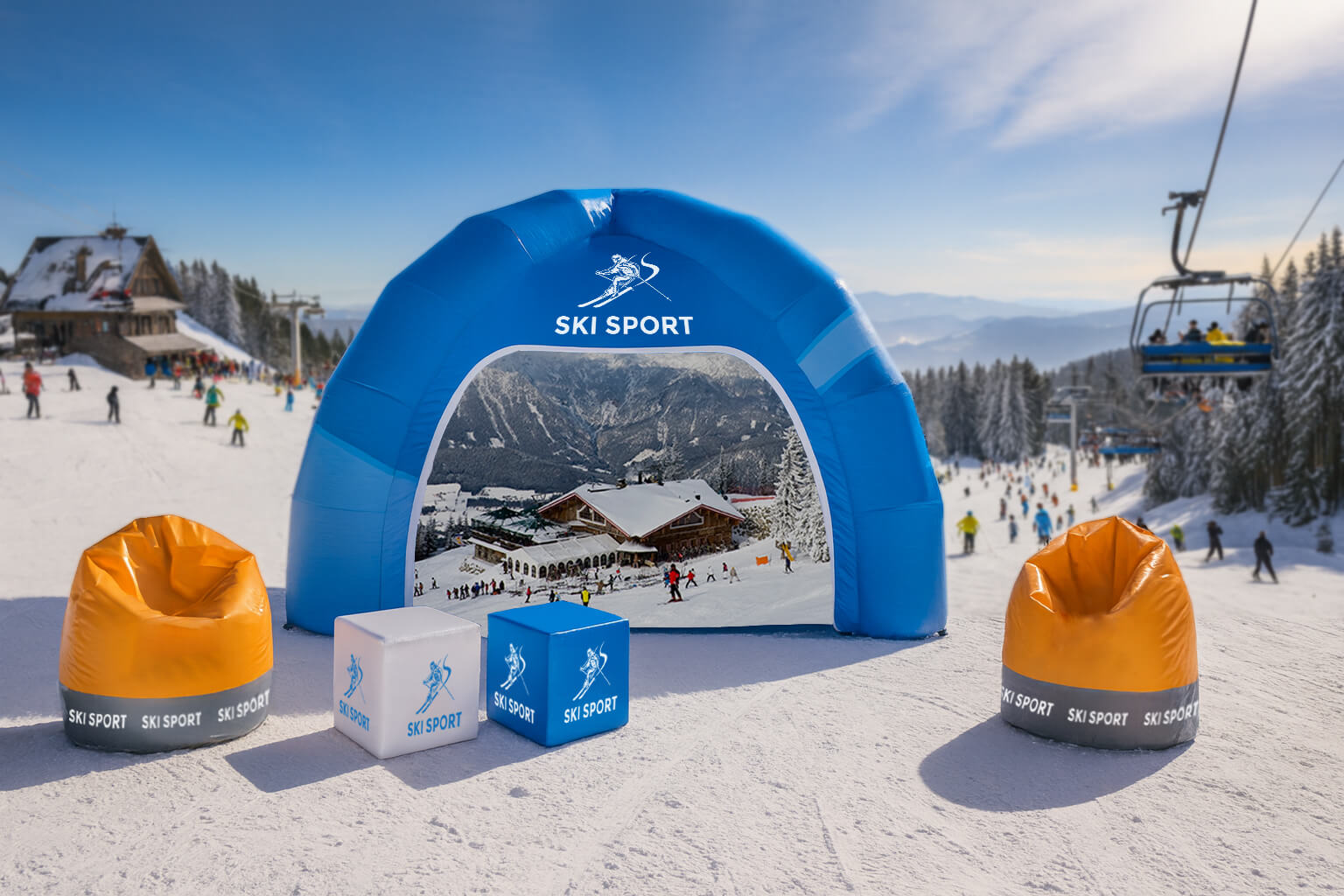 Vollständige Personalisierung – das aufblasbare Zelt mit Aufdruck