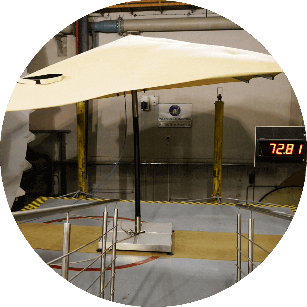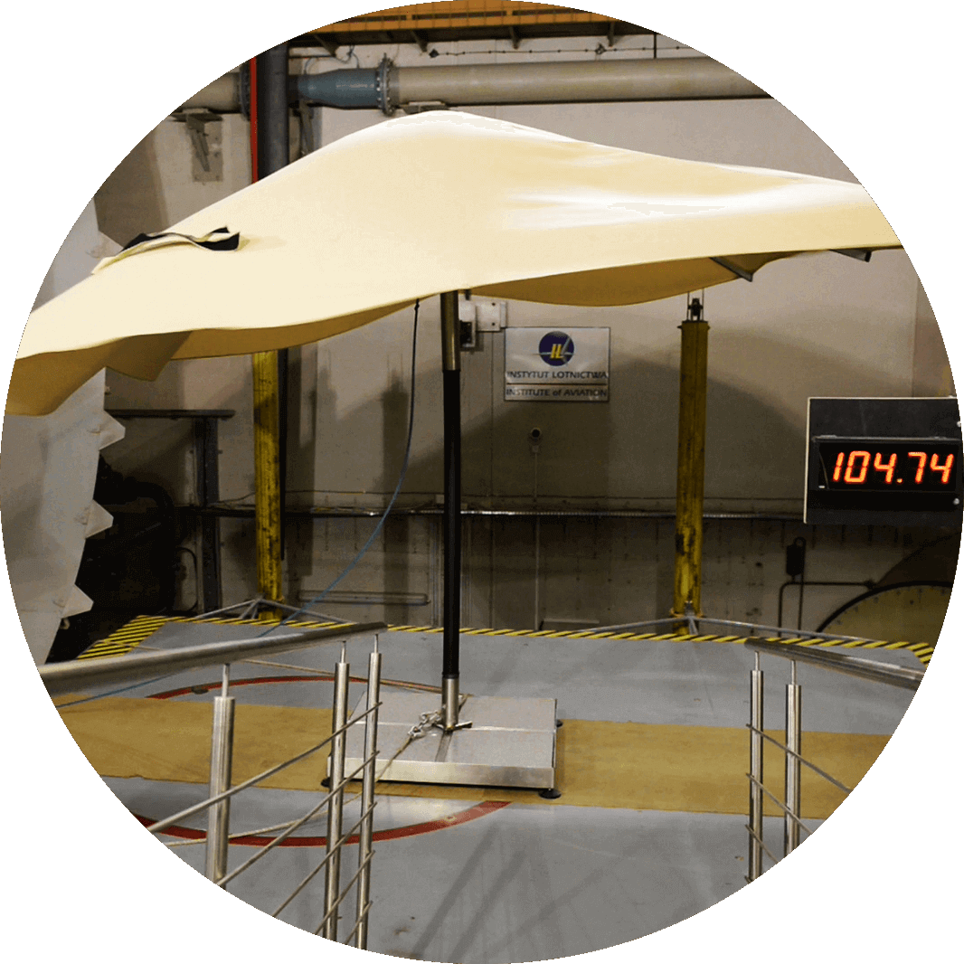 Starke Aluminiumhülsen und zusätzliche Befestigungen sorgen dafür, dass der Sonnenschirm Atlantic neben seiner Widerstandsfähigkeit auch ein ästhetischer Blickfang ist. Erwähnenswert ist auch das Schirmdach-Spannsystem, das bisher bei anderen Sonnenschirmen nicht anzutreffen war. Als Schirmstoff wurden für den Sonnenschirm Acryl- und Polyesterfaserstoffe verwendet.