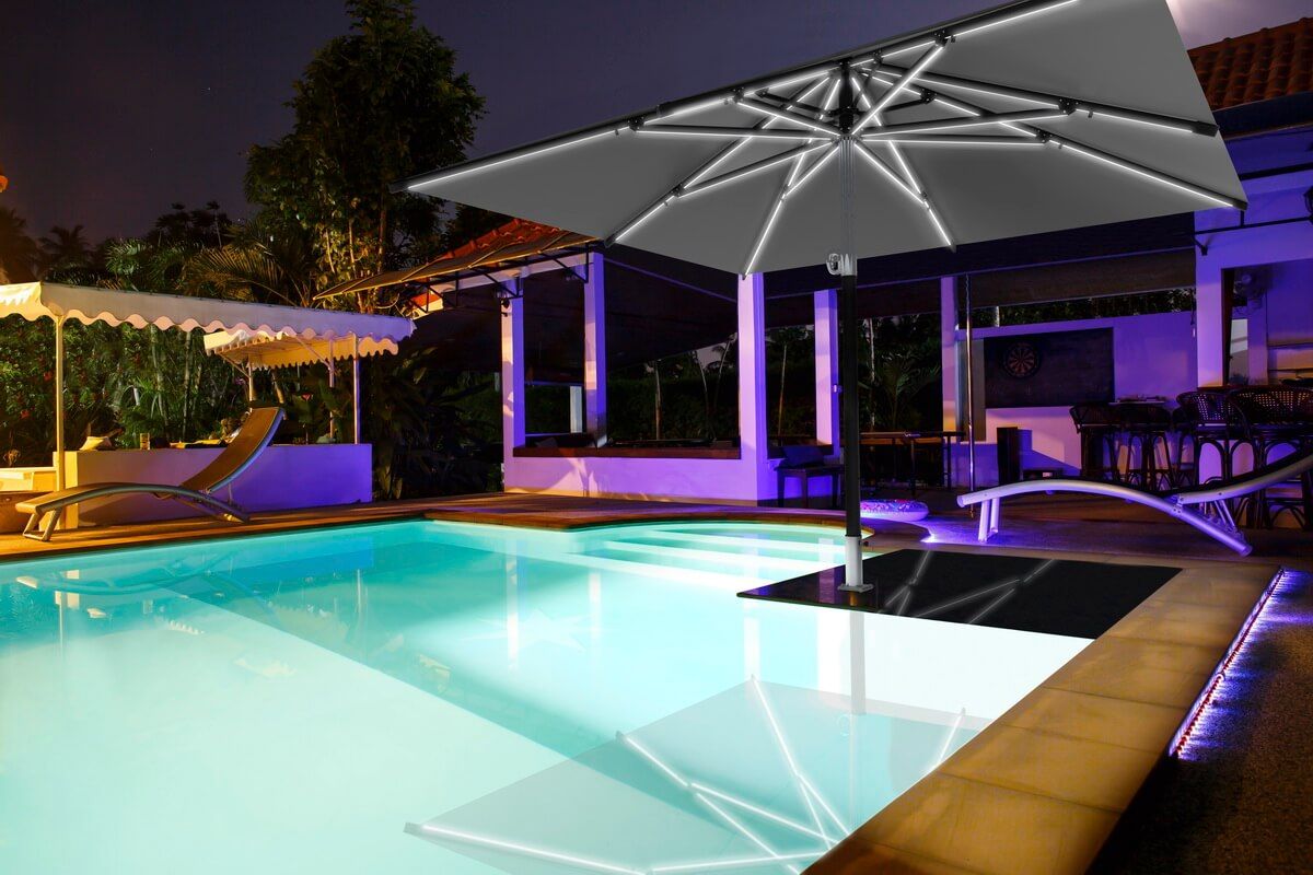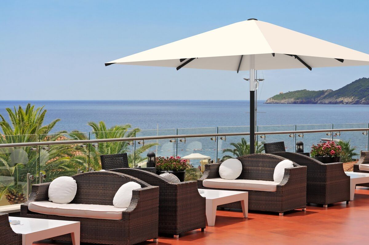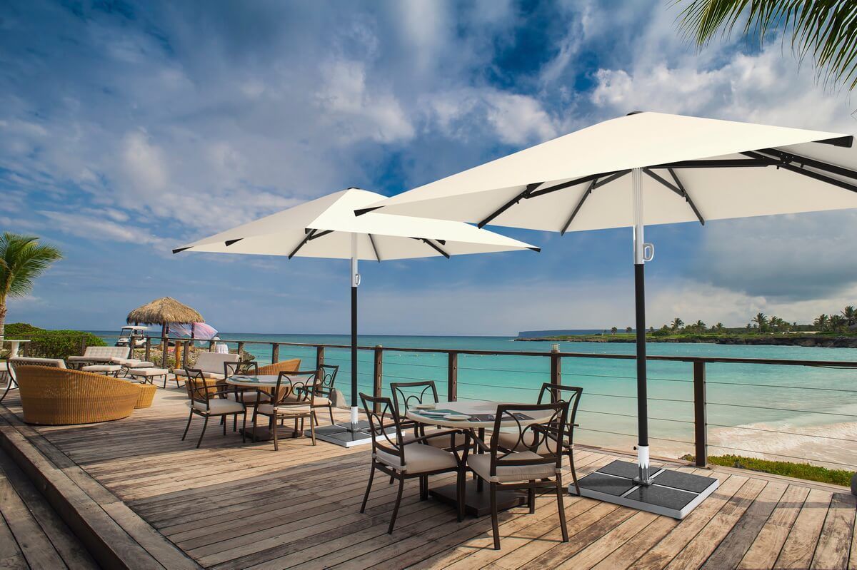 Er bietet den Schutz vor Sonne und Regen, ist aber auch eine Form der Werbung und Promotion, z. B. als universelle Ausstattung von Sommergärten, Terrassen und Balkonen von Restaurants, Cafés und Hotels. Die perfekte Art, einen Stand zu schaffen, der sich von anderen Aussteller auf Messen, Veranstaltungen und Outdoor-Events sichtbar abhebt. Der Atlantic Sonnenschirm zeichnet sich durch seine moderne, quadratische Form aus, wodurch er größeren Schatten spendet. Er besteht aus wasserdichtem Gewebe und ist gegen Sonneneinstrahlung beständig, so dass die Grafiken auf dem Material nicht verblassen und ihre Farbintensität nicht verlieren.
