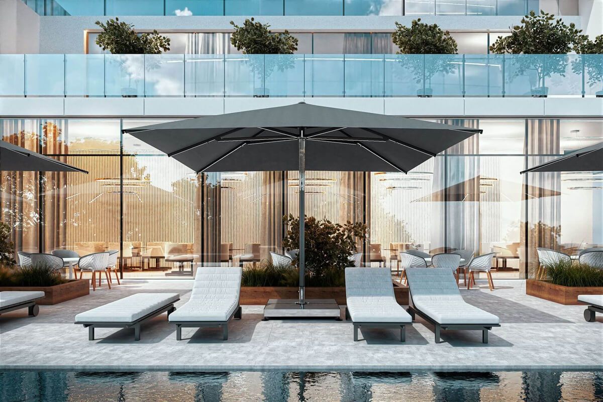 Die Produktreihe Atlantic hat nicht nur ein raffiniertes Design, sondern zeichnet sich auch durch praktische Handhabung aus. Bei dem Entwurf der Sonnenschirme dieser Produktreihe wurde auf die einfache Nutzung und das ästhetische Aussehen Wert gelegt. Durch sein ästhetisches Design ist dieser Sonnenschirm ein Blickfang für jeden Liebhaber des guten Stils.