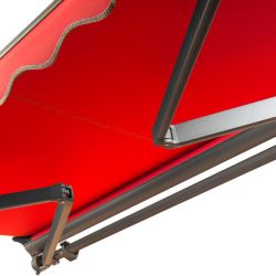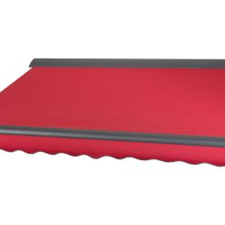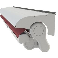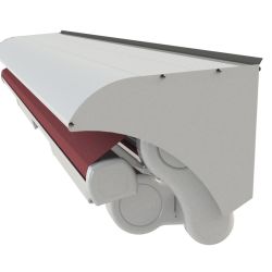 Die Markise befindet sich in einer Aluminium-Halbkassette, die die Bespannung vor schädlichen Witterungseinflüssen schützt,