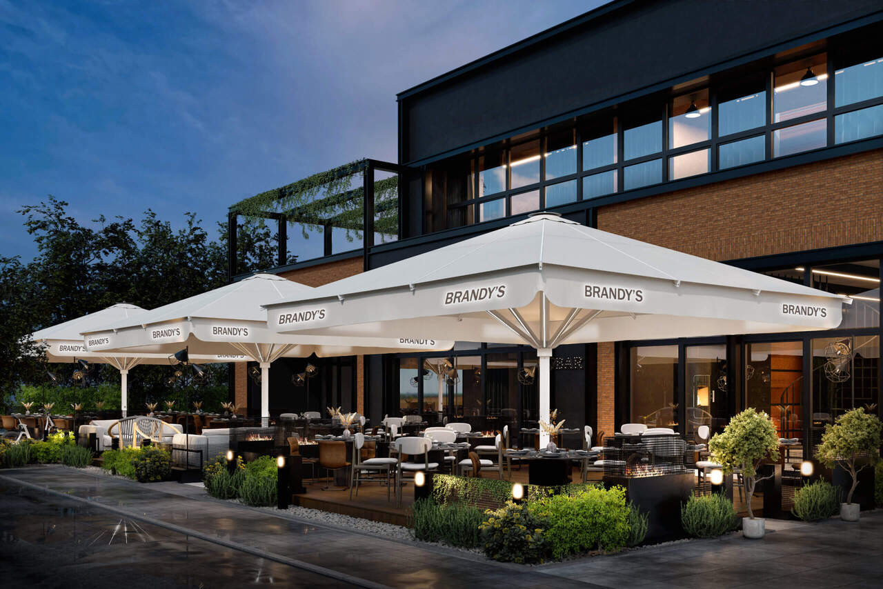 Strapazierfähige personalisierte Bespannung – großer Sonnenschirm für Biergarten mit Logo