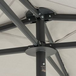 Der maßgeschneiderte Öffnungs- und Schließmechanismus macht den Schirm einfach zu handhaben und bequem zu tragen. Der geteilte Mast erleichtert den Transport und die Lagerung (z. B. außerhalb der Saison).