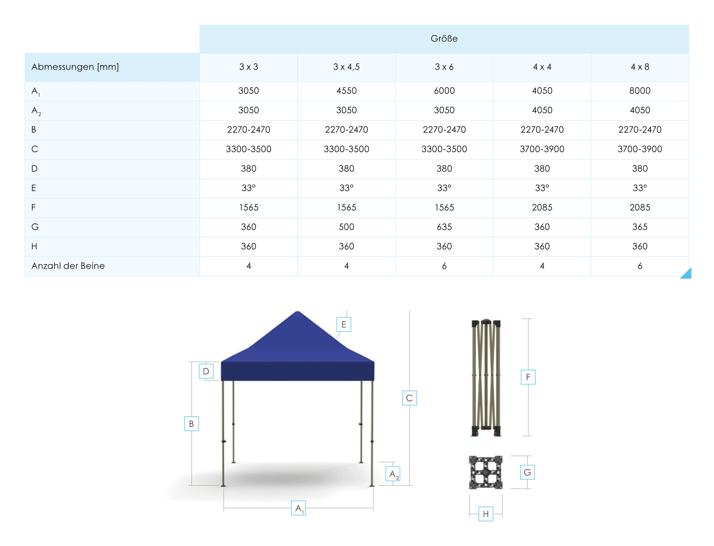 Größe:3 x 3 m, 4 x 4 m, 3 x 4,5 m, 3 x 6 m, 4 x 8 m