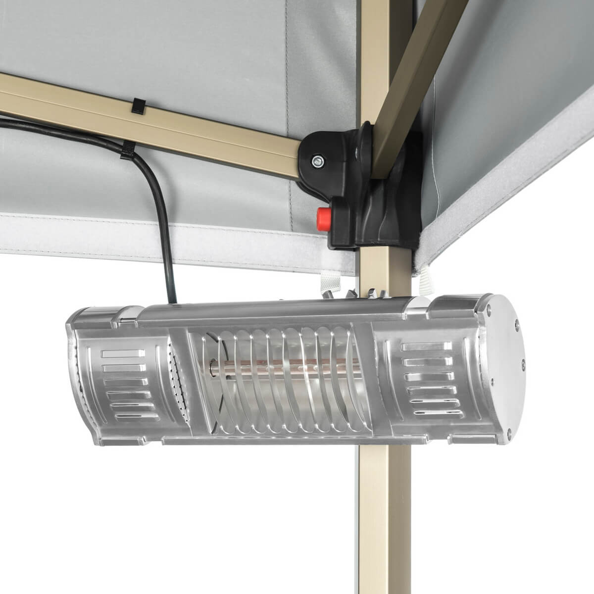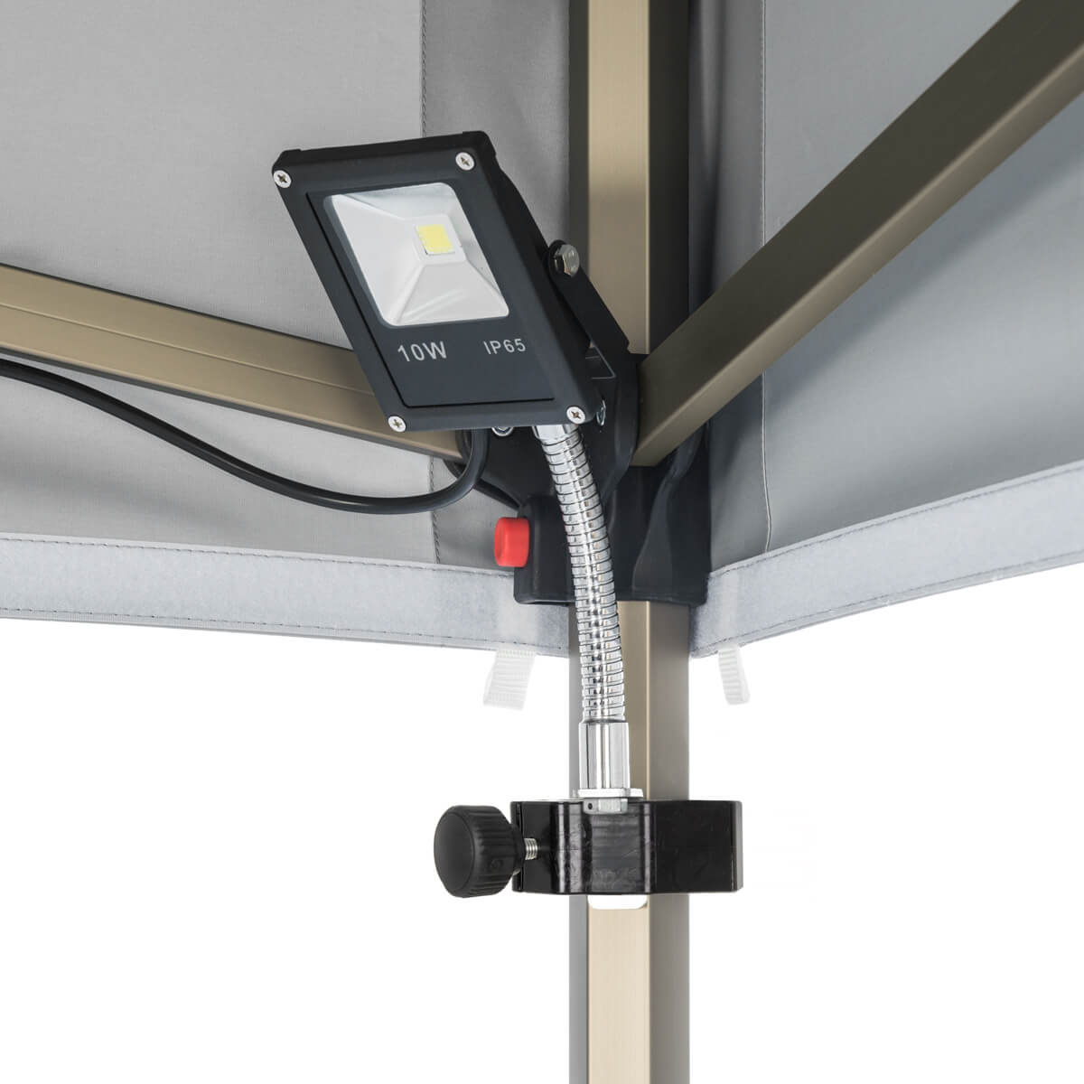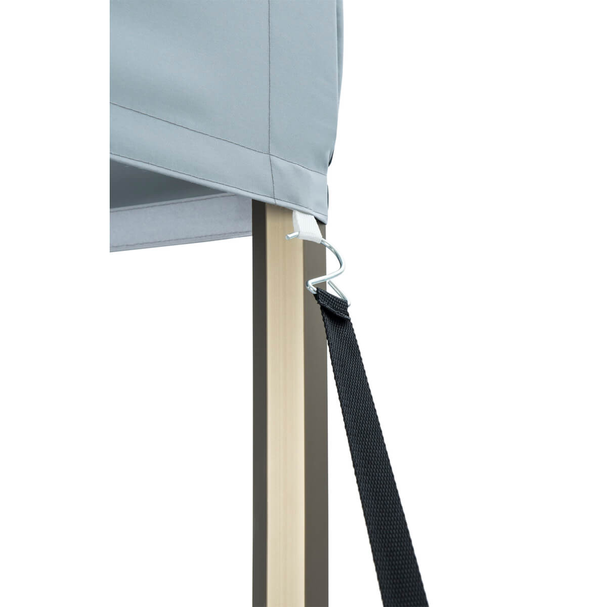 Das Gestell des Zeltes aus champagnerfarbenem Aluminium mit Sechskantprofil vereint Robustheit und Eleganz. Die eloxierte Beschichtung schützt vor Kratzern und sorgt auch bei intensiver Nutzung für ein ansprechendes Erscheinungsbild.
