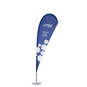 Welche Art von Werbe- und Strandfahnen hat Litex Promo im Angebot?